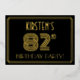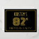 The front of this 1920s-1930s style inspired and vintage-style eighty-second birthday party/celebration foil invitation features a custom name, a large art deco look inspired number “82ND”, the message “BIRTHDAY PARTY!”, and a border pattern consisting of lines. The front also has a black-coloured background by default, but it can be customised to a different colour if desired. The back features personalised details about the event, such as the date, time, location, and any other information that may be relevant. Elegant, luxurious, customisable invitations like these might be used to invite guests to a birthday party/celebration being held to honour somebody’s 82nd birthday. [~Z0000590]