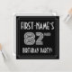 The front of this 1920s-1930s style inspired eighty-second birthday celebration/party invitation card design features a personalised name, an intricate art deco style inspired number “82nd”, the message “BIRTHDAY PARTY!”, and a multi-line border. The front also features a black-coloured background by default, but it can be customised to a different colour if desired. The back features personalised details about the event, such as the date, time, place, and any other information that may be useful. Stylish, luxurious, personalised invitations like these might be used to invite attendees/guests to a birthday gathering/party being held to celebrate somebody’s 82nd birthday. [~Z0000615]