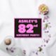 The front of this bold and fun eighty-second birthday celebration foil announcement card features a personalised name, a large number “82nd”, the message “BIRTHDAY PARTY!”, and a border, all featuring a feminine dark pink and light pink stripes pattern. The back features personalised details about the event, such as the date, time, location, and any other relevant information. Personalised invitations like these might be used to invite guests to a birthday gathering being held in celebration of somebody’s 82nd birthday. [~Z0000597]
