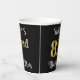 This ornate and fancy birthday paper cup design features a personalised name and the message “82nd Birthday Party”. The large number “82nd” has a faux/imitation gold-inspired colouring pattern, and the words “Birthday Party” are in elegant script-style text. The background is coloured black by default (although it can be customised). Opulent, elegant paper cups like this might be useful to have at a birthday party/celebration being held to honour somebody’s eighty second birthday. [~Z0000567]