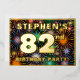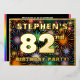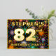 The front of this exciting eighty-second birthday party foil invitation card design features a personalised name, a large number “82nd”, the message “BIRTHDAY PARTY!”, and a border. The background of the front has an upbeat, multicolored pattern inspired by bursting celebratory fireworks. The back features personalised details about the event, such as the date, time, place/venue, and any other useful information. Customised invitations like these might be a fun way to invite attendees to a birthday gathering being held to honour somebody’s 82nd birthday. [~Z0000602]