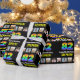 This upbeat and bold birthday-themed wrapping paper design features a large number “82“ having a vibrant multicolored rainbow spectrum inspired gradient pattern, along with the message “Happy 82nd Birthday,“ and a customisable recipient name. There are also some photos that can be personalised, perhaps with photos of the recipient, the recipient’s family and friends, and/or the sender(s) of the gift. Birthday themed wrapping paper like this might be used when giving a gift or present in celebration of somebody’s eighty-second birthday. (Photography © Storytree Studios, Stanford, CA.) [~Z0000670]