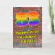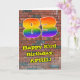 This vibrant and exciting urban graffiti and street art themed birthday greeting card design features a large number “83” having a colourful rainbow spectrum gradient inspired pattern. It also features the message “Happy 83rd Birthday,”, and an editable name. The background of the front features a brick wall pattern. The inside features a customisable birthday greeting message, or could perhaps be cleared and left blank if a message is to be written by hand instead. A vibrant, editable birthday greeting card like this might be used to celebrate somebody’s eighty-third birthday. [~Z0000586]