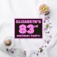 The front of this fun and bold eighty-third birthday celebration/party foil announcement card features a custom name, a large number “83rd”, the message “BIRTHDAY PARTY!”, and a border, all featuring a girly dark pink and light pink striped pattern. The back features personalised details about the event, such as the date, time, place/venue, and any other relevant information. Customisable invitations like these might be used to invite attendees/guests to a birthday party being held in celebration of somebody’s 83rd birthday. [~Z0000597]
