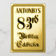 The front of this opulent eighty-third birthday party/celebration foil invitation/announcement card design features the message “83rd Birthday Celebration” in ornate script-style text. It also features an editable name. The back features personalised details about the event, such as the date, time, location/venue, and any other important information. Luxurious, ornate, customised invitations like these might be used to invite guests to a birthday celebration being held in celebration of somebody’s eighty-third birthday. [~Z0000596]