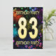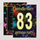 Add a name to customise this unique party invitation. 83rd birthday party invitation with fireworks and bubbles. Add your details inside to create a perfect fun invite. Light up the sky with these glorious fireworks. An invitation to a birthday party that has style and loads of fun.