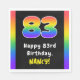 This fun and cheerful birthday-themed paper napkin design features a large number “83“ having a vibrant rainbow spectrum inspired gradient pattern, along with the message “Happy 83rd Birthday,”, and a custom recipient name. Paper napkins like these might be used when celebrating somebody’s eighty third birthday. [~Z0000629]