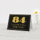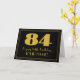 This vintage appearance and Roaring Twenties era inspired birthday-themed greeting card design features a large art deco style inspired number "84", the message "Happy 84th Birthday,", a customisable name, and a border pattern consisting of thin lines on the front. The background of the front is coloured black. The inside has a personalised birthday greeting message, or could perhaps be cleared and left blank if a message is to be written by hand instead. A personalised birthday greeting card like this might be a fun way to deliver birthday greetings to somebody who is celebrating their eighty-fourth birthday. [~Z0000498]