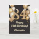 84th Birthday Black and Gold Balloons Confetti Card