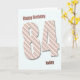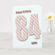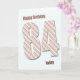A very modern 84th birthday card. This card is truly fabulous. Big letters in modern stripes on a blue background. Customise for your own unique message.