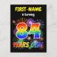 The front of this fun and exciting birthday party invitation postcard design has a customisable name, a lively bursting celebratory fireworks inspired pattern, and the message "84 YEARS OLD!" having a colourful rainbow spectrum inspired gradient pattern. The back features a customisable message with information about the party, such as when and where it is being held. Invitation postcards like this could be sent to potential guests of a birthday party being held in celebration of somebody’s eighty fourth birthday. [~Z0000452]
