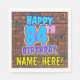 This fun birthday paper napkin design features the message “HAPPY 84TH BIRTHDAY,” having a colourful, vibrant, urban street art and graffiti inspired appearance, plus a customisable recipient name. The background features a pattern inspired by the look of a brick wall. Birthday themed paper napkins like this might be used at a birthday party celebrating somebody’s eighty fourth birthday. [~Z0000534]