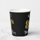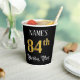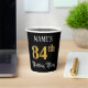 This opulent and ornate birthday-themed paper cup design features an editable name and the message “84th Birthday Party”. The large number “84th” has a faux/imitation gold-inspired colouring pattern, the words “Birthday Party” are in luxurious script-style text, and the background is coloured black by default (although it can be customised). Luxurious, fancy paper cups like this might be useful at a birthday celebration/party being held to honour somebody’s 84th birthday. [~Z0000567]