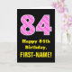 84th Birthday: Pink Stripes and Hearts "84" + Name Card