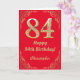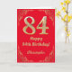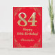 84th Birthday Red and Gold Glitter Frame Card