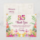 Send warm appreciation after a milestone birthday with this elegant floral postcard. Featuring vibrant watercolor flowers on a soft linen background with a bold “85,” this customisable design is the perfect way to thank guests and loved ones. Enjoy!