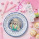 85 Your Photo Random Number Pattern Blue/White Paper Plate