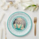 85 Your Photo Random Number Pattern Teal/White Paper Plate