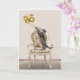 Grey tabby cat with gold foil balloons on an old-fashioned chair for 85th birthday.