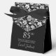 This elegant 85th Birthday Black Silver Floral Thank You favor box with shimmering silver faux foil, the birthday girl's name in a trendy script font, and tied with an elegant black bow would be perfect for your event. It would be great for a candy station, on a thank you gift table, or at each place setting with a favor. Be sure you order enough for all your guests.