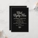 Elegant black and white invitation features white pearl script and a tiny pearl bow on a black background. Club Eighty-Five gives it a trendy vibe and the bow at the bottom adds elegant femininity.