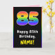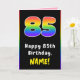 85th Birthday: Colourful Rainbow # 85, Custom Name Card