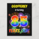 The front of this vibrant and lively birthday party invitation postcard design features a customisable name, a fun bursting celebratory fireworks inspired pattern, and the message "85 YEARS OLD!" having a colourful rainbow spectrum inspired gradient pattern. The back features a customisable message with information about the party, such as when and where it is being held. Invitation postcards like this could be sent to potential guests of a birthday party being held to celebrate somebody’s eighty fifth birthday. [~Z0000452]