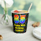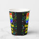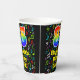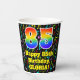 This cheerful and fun music-themed birthday paper cup design features a large number “85” with a rainbow spectrum gradient inspired pattern, along with the message “Happy 85th Birthday,”, and a personalised name. The background features a colourful music notes and symbols pattern. Vibrant, colourful paper cups like this might be fun to use at a birthday party/celebration being held to honour somebody’s eighty fifth birthday. [~Z0000541]