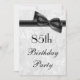 Womens' elegant 85th Birthday Party invitations. Woman's eighty fifth / eighty five years old birthday party invites. Beautiful white damask pattern background with a pretty, stylish black bow and ribbon image. These glamourous, chic, classy invites are beautifully sophisticated and are decorated / printed on both sides. PLEASE NOTE: All invites on Zazzle have flat printed images. Bow and ribbon images purchased from digital-designs-by-elena. If you need any assistance customising your invitation please contact me through my store and I will be happy to help.