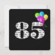 Bold black and white text on black background with colourful party balloons for 85th birthday party invite.