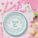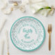 85th Birthday Random Number Pattern Teal/White Paper Plate
