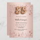 A modern, stylish and glamourous invitation for a 85th birthday party. A rose gold background with stars.The name is written with a hand lettered style script. Personalise and add your party details. Number 85 is written with a balloon style font, script.