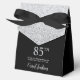 This fabulous modern 85th Birthday Silver Glitter Thank You favor box with sparkling silver glitter, the birthday girl's name in a trendy script font, and tied with an elegant black bow would be perfect for your event. It would be great for a candy station, on a thank you gift table, or at each place setting with a favor. Be sure you order enough for all your guests.