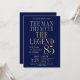 His life has been a great adventure! This fabulous navy blue men's 85th birthday party invitation that says "The Man The Myth The Legend" in a classic font in silver and gold would be perfect for asking people to join you as you celebrate the man in your life's 85th birthday. This invitation is trendy, stylish, modern and contemporary. To see your unique invitations select "Personalise this template" and type in your information. It's super easy!
