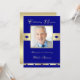 Navy and gold are the colours used to create this stylish 85th photo birthday party invitation. A photo of your loved one is the focal point of this design. The photo sits inside a lovely golden frame which has bars on either side with a navy blue diamond shape inside. The words "Celebrating 85 years" are above the photo and the words "Please join us in honouring" are below the photo along with the name of the honoree. Below this is another golden bar with navy diamond shapes inside. The back features all the 85th birthday party invitation details. A great way to invite guests to an 85th birthday party. Copyright henishouseofpaper