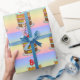 This cheerful and upbeat birthday-themed wrapping paper design features a cartoon-style depiction of a three-tier birthday cake having number-shaped candles on top showing the age “86“, along with the message “HAPPY 86TH BIRTHDAY,”, and an editable recipient name. The background features a multi-colour pastel rainbow spectrum inspired gradient pattern. Wrapping paper like this might be used when wrapping gifts being given to somebody in celebration of their eighty sixth birthday. [~Z0000622]