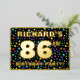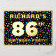 The front of this upbeat and eye-catching eighty-sixth birthday party foil invitation card design features an editable name, a large number “86th”, the message “BIRTHDAY PARTY!”, and a border. The background of the front features an exciting, multicolored pattern of star shapes. The back features personalised details about the event, such as the date, time, venue/location, and any other information that may be important. Editable invitations like these might be a fun way to invite guests/attendees to a birthday gathering being held to honour somebody’s 86th birthday. [~Z0000600]