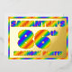 The front of this eye-catching and joyful eighty-sixth birthday celebration/party foil invitation card features a custom name, a large number “86th”, the message “BIRTHDAY PARTY!”, and a border, all featuring a vibrant, multicolored, rainbow spectrum inspired gradient pattern. The back features personalised details about the event, such as the date, time, place/venue, and any other important information. Upbeat, fun, customisable invitations like these might be used to invite guests to a birthday gathering/party being held in celebration of somebody’s 86th birthday. [~Z0000593]