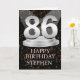 Make an 86th birthday card extra special by adding a name. The number 86 on a plinth with spotlights shining to light it up!