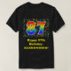 This fun, colourful, and vibrant birthday-themed shirt design features a large number "87" having a rainbow spectrum gradient inspired pattern. It also features the message "Happy 87th Birthday,", and a personalised name. A fun, colourful pattern of various music notes and music symbols appears behind the rainbow-coloured birthday number. Shirts like this might be worn by the attendees at a birthday celebration being held to celebrate a musician’s, a singer’s, a song composer’s, or somebody else’s eighty seventh birthday. [~Z0000428]