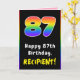 87th Birthday: Colourful Rainbow # 87, Custom Name Card