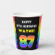 87th Birthday: Colourful Rainbow # 87, Custom Name Paper Cups