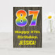 87th Birthday: Rustic Faux Wood Look, Rainbow "87" Card