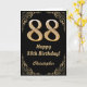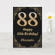 88th Birthday Black and Gold Glitter Frame Card