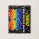 This fun and exciting birthday themed jigsaw puzzle design features a large number “88” with a multicolored rainbow spectrum inspired gradient pattern, along with the message “HAPPY 88th BIRTHDAY,”, and a custom recipient name. The background features an eye-catching, colourful star field pattern. A bold, editable birthday puzzle like this might be used to acknowledge somebody’s eighty-eighth birthday. [~Z0000607]