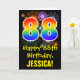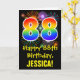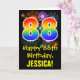 The front of this exciting, colorful, and fun birthday-themed greeting card design features a large number "88" with a rainbow spectrum gradient inspired pattern, along with the message "Happy 88th Birthday,", and a customizable recipient name. The front additionally has a colorful background pattern inspired by bursting celebratory fireworks. The inside features a customized birthday greeting message, or could perhaps be cleared and left blank if a message is to be written by hand instead. A customizable birthday card like this might be a fun way to acknowledge somebody’s eighty eighth birthday. [~Z0000442]