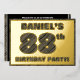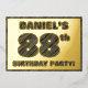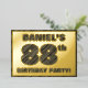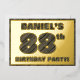 The front of this bold eighty-eighth birthday party foil invitation card features an editable name, a large number “88th”, the message “BIRTHDAY PARTY!”, and a border, all featuring a rustic, yet sophisticated, faux wood grain look inspired pattern. The back features personalised details about the event, such as the date, time, place/venue, and any other relevant information. Customised invitations like these might be used to invite guests/attendees to a birthday party being held to celebrate somebody’s 88th birthday. [~Z0000595]
