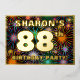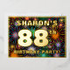 The front of this upbeat and joyful eighty-eighth birthday party/celebration foil invitation card design features a customisable name, a large number “88th”, the message “BIRTHDAY PARTY!”, and a border. The background of the front has an eye-catching, multicolored pattern that resembles bursting celebratory fireworks. The back features personalised details about the event, such as the date, time, place/venue, and any other important information. Customised invitations like these might be a fun way to invite guests/attendees to a birthday gathering being held in celebration of somebody’s 88th birthday. [~Z0000602]