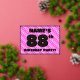 The front of this upbeat and joyful eighty-eighth birthday celebration foil invitation card design features a custom name, a large number “88th”, the message “BIRTHDAY PARTY!”, and a border. The background of the front features a loving light pink and dark pink striped pattern, with heart shapes. The back features personalised details about the event, such as the date, time, location/venue, and any other relevant information. Personalised invitations like these might be a fun way to invite attendees to a birthday gathering being held to celebrate somebody’s 88th birthday. [~Z0000603]
