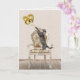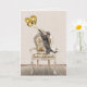 Grey tabby cat with gold foil balloons on an old-fashioned chair for 89th birthday.